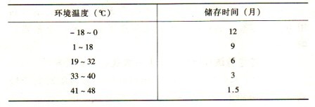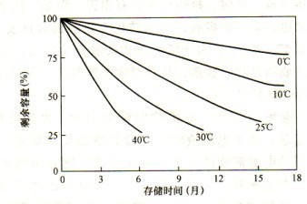 表4—1 閥控電池儲存時(shí)間與環(huán)境溫度的關(guān)系